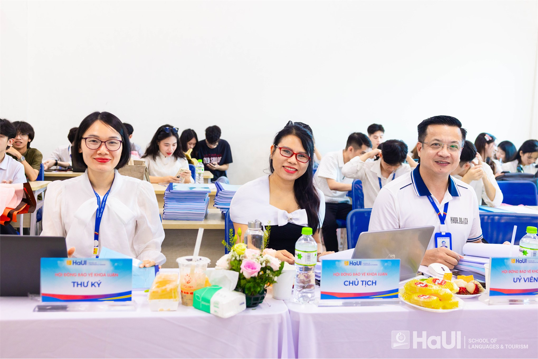Từ ngày 04 đến 06/6/2025, Trường Ngoại ngữ - Du lịch đã long trọng tổ chức Lễ bảo vệ khóa luận tốt nghiệp cho sinh viên Đại học chính quy khóa 16 thuộc ba ngành: Du lịch, Quản trị dịch vụ du lịch và lữ hành, Quản trị khách sạn.